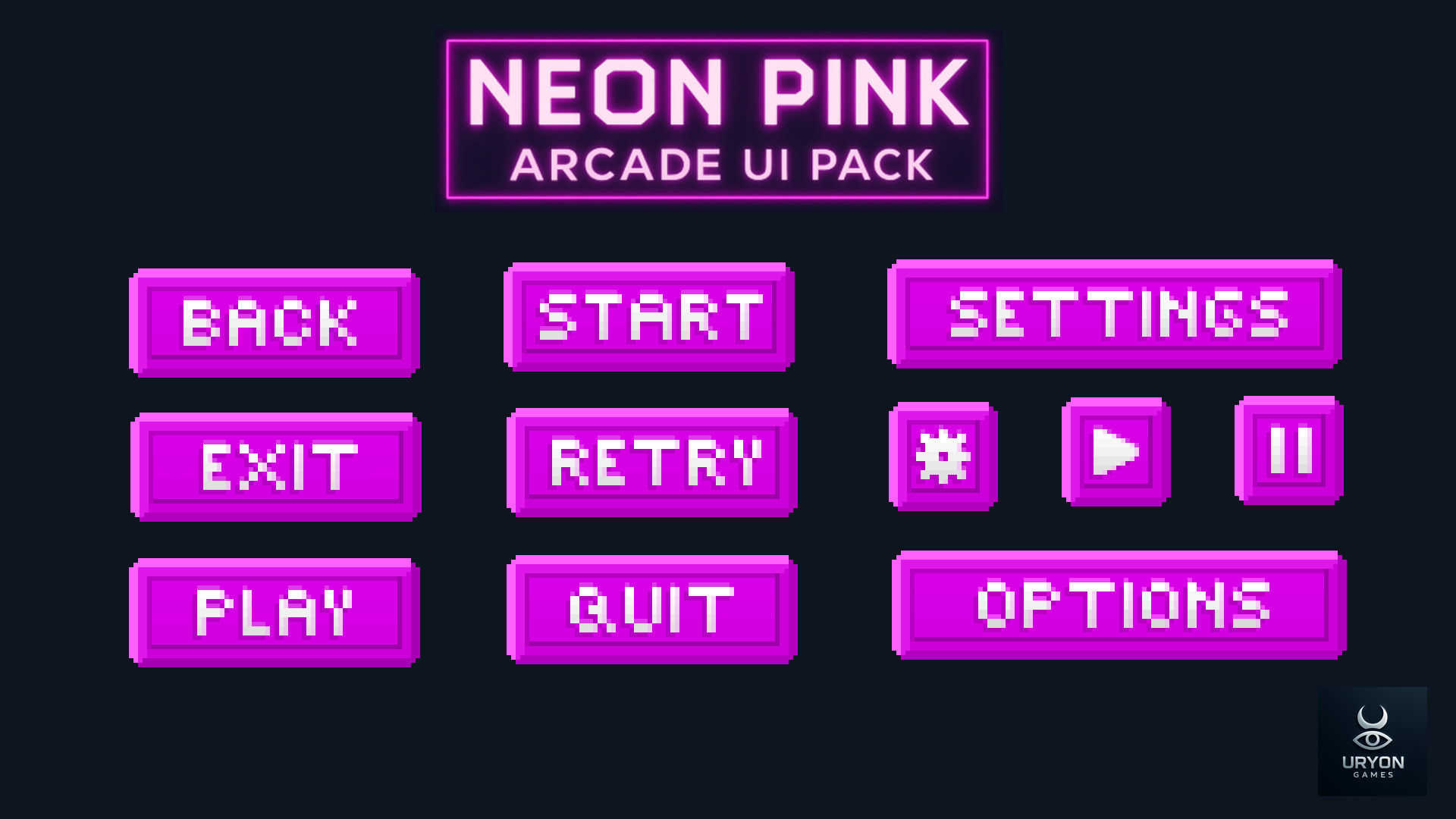 Neon Pink UI Pack – Pixel Arcade Buttons